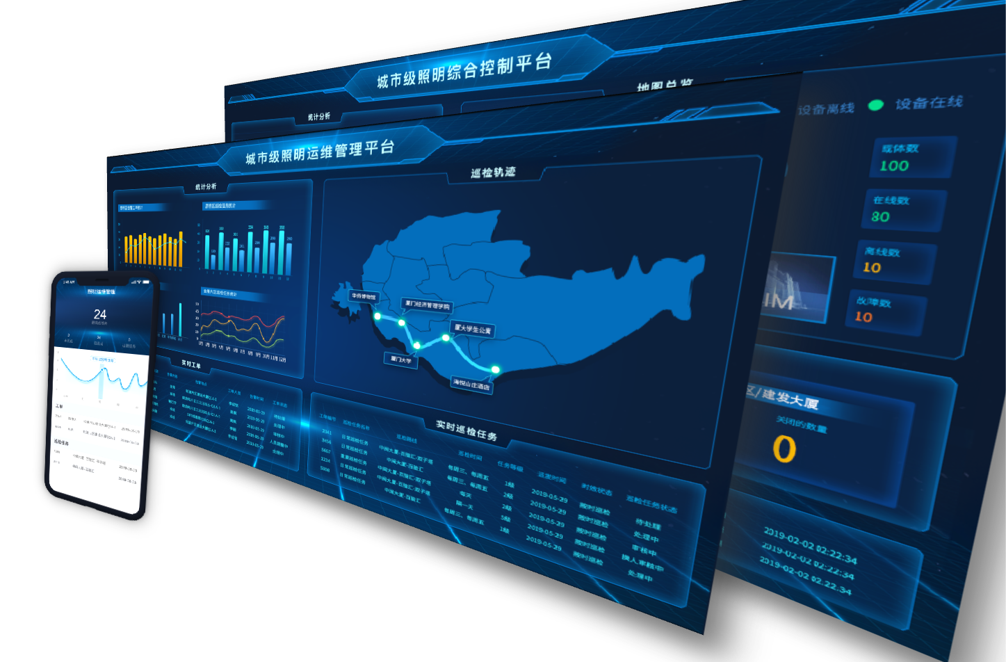 燈光控制包括燈光回路控制及燈光回路狀態實時監控,在手動模式和策略模式情況下控制全市片區及樓棟回路。